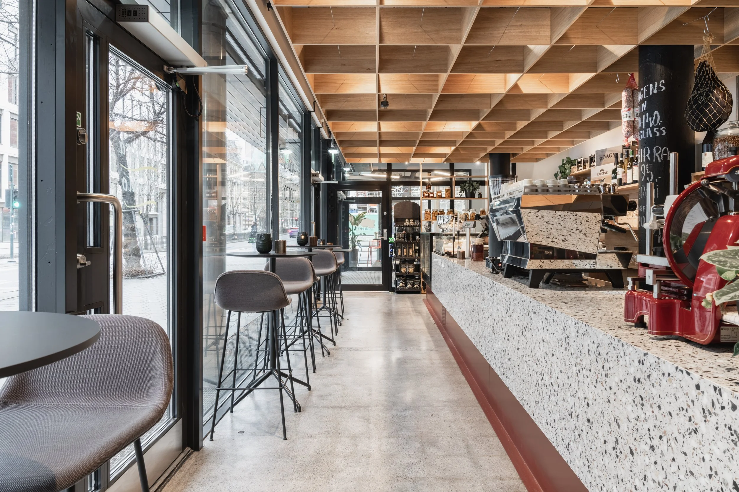 Delikatessebutikken er sterkt inspirert av den italienske delikatessebutikken, hvor du kan sitte ned for et glass vin og en aperitiff.