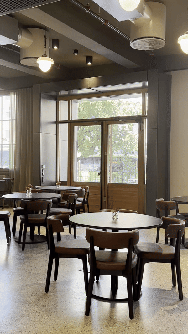 Replica pendants from the building's original design have been created, adding historical references and a cozy atmosphere to the space.